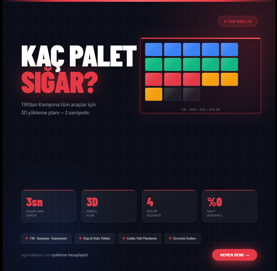 Nakliye sektöründe her santimetre, her kilogram ve her dakika değerlidir. Yanlış hesaplanan bir yükleme planı; hem gereksiz maliyet hem de ciddi zaman kayıplarına yol açar. Uğur Nakliyat olarak bu sorunu kökten çözmek için Türkiye’nin ilk 3D Yük Hesaplama ve Görselleştirme Sistemini geliştirdik.